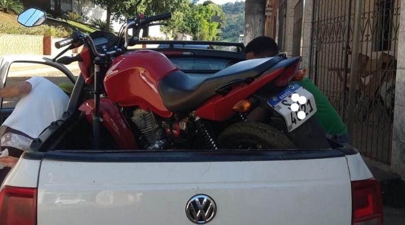 A motocicleta usada para o transporte das drogas foi localizada.