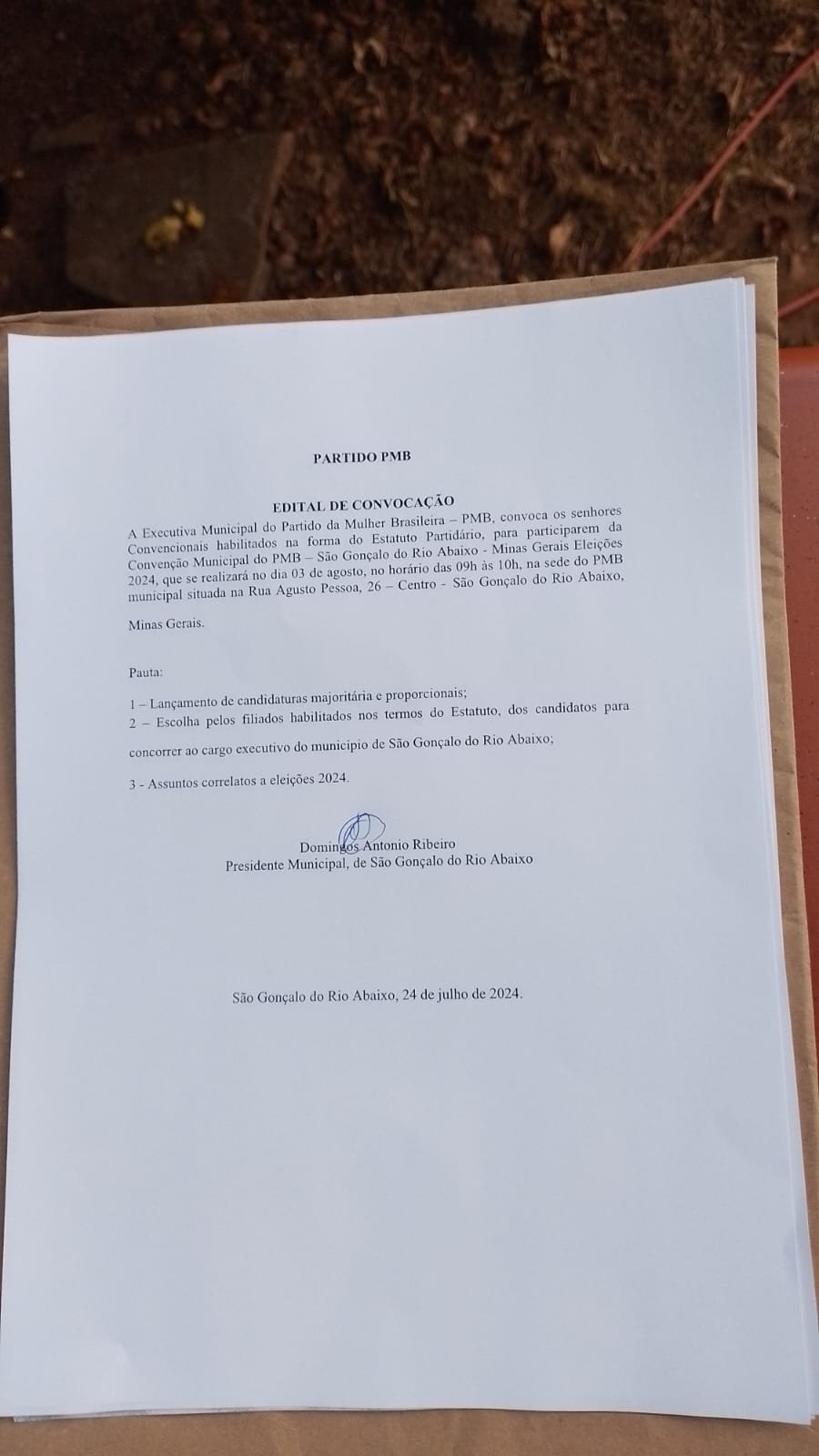 E agora lançou o edital para escolher um nome, esse nome pode ser ele ou algum dos filiados ao PMB, Partido da Mulher Brasileira.