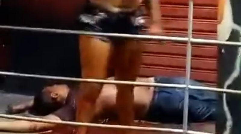 A esposa da vítima ficou desferindo chutes na porta do bar e da casa do autor que mora ao lado.