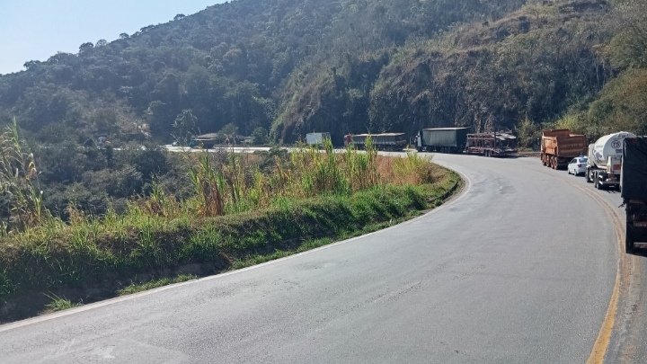 Agora são exatamente 16 horas da tarde, e quando estávamos descendente a serra da Lanchonete Montanha Lanches, nos separamos com um veículo (caminhete) da empresa Móveis Dular que saiu da pista, próximo da Localidade de Mãe D’água e tombou na canaleta, isso gerou um congestionamento na faixa de três kilometrico no sentido Belo Horizonte.