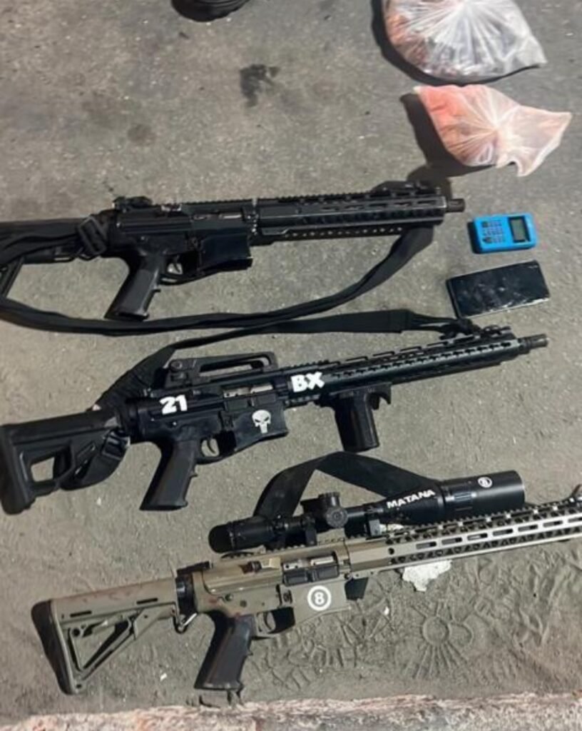 E inevitavelmente aconteceu o confronto, havia três bandidos no veículo Cruiser e com eles três fuzis de grosso calibre modelo AK-47 de fabricação Russa, drogas, dinheiro, máquina de cartão, balas de fuzil e um aparelho celular.