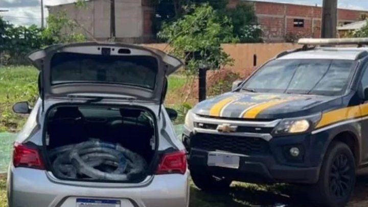 A equipe da PRF então realizou a abordagem do referido veículo e em seu porta-malas foi encontrado o material agrícola da loja na qual aplicaram o golpe.