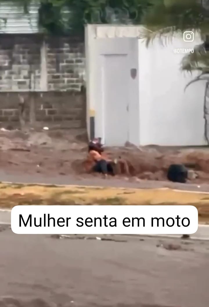 E isto causou inundações na cidade, em uma avenida uma mulher se sentiu sobre sua moto durante a correnteza com medo da correnteza levar a moto.