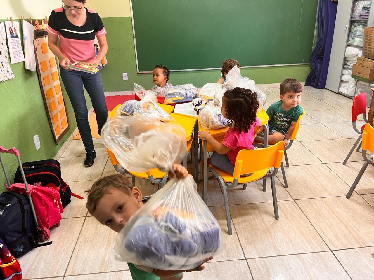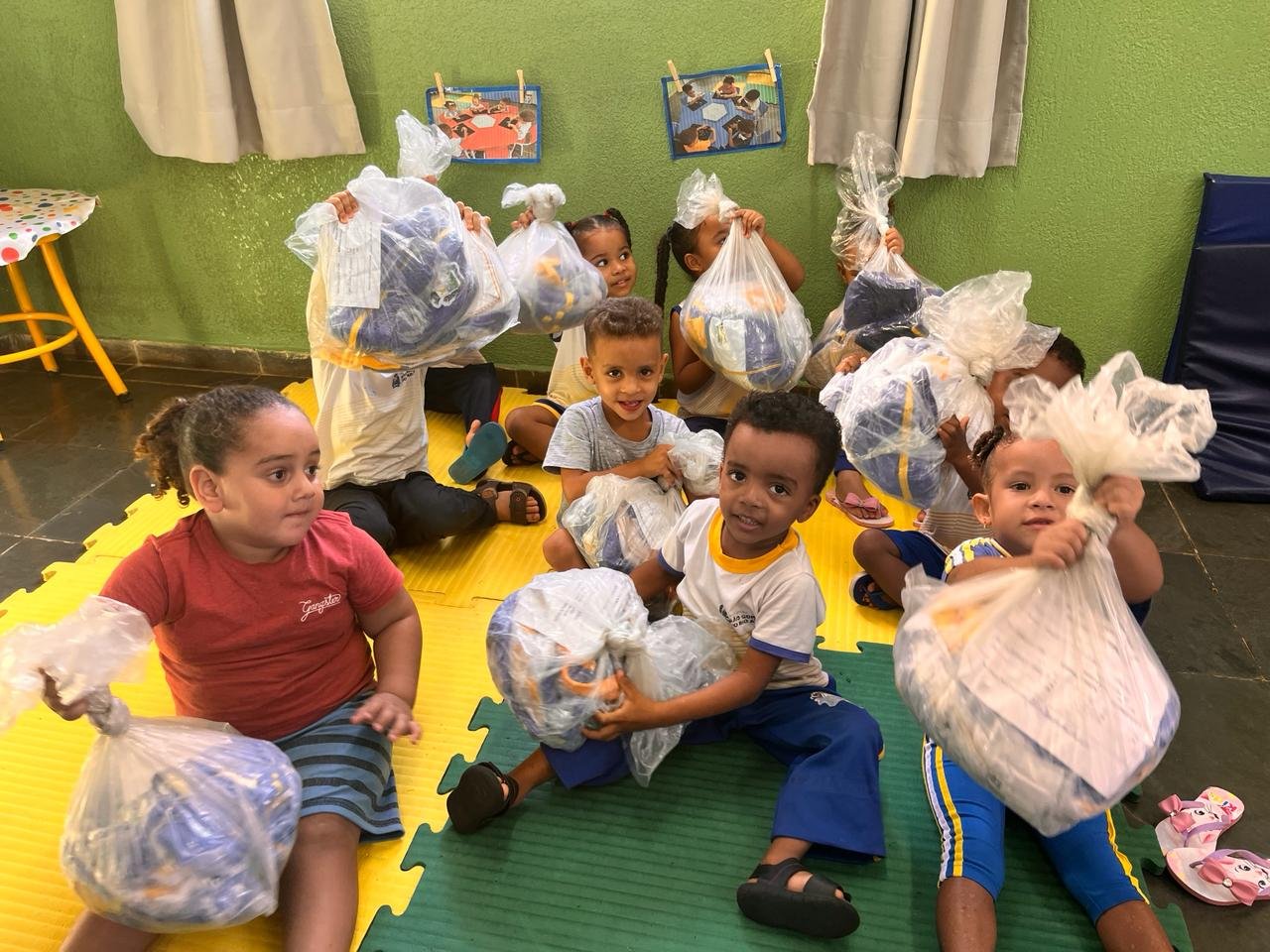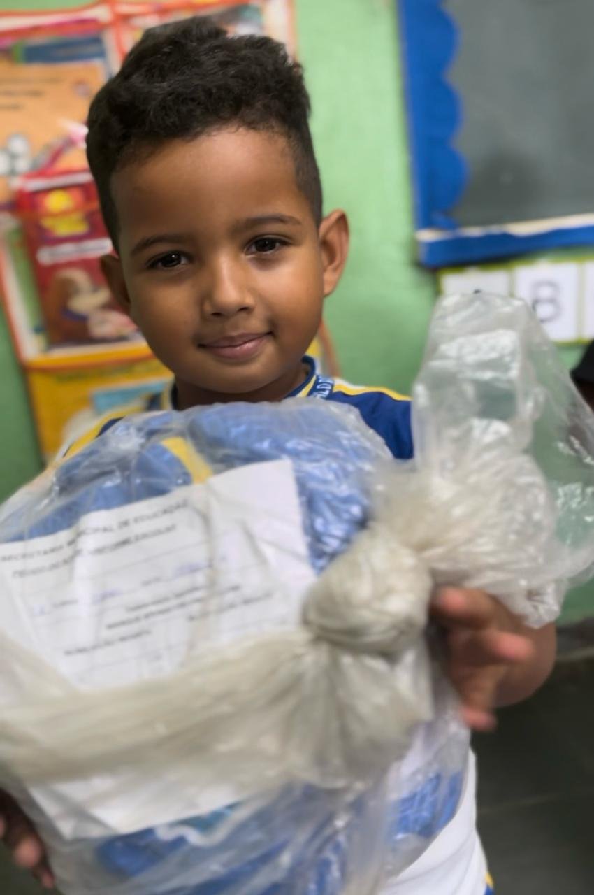 Alunos receberam kit com 10 peças de uniformes conforme idade.
