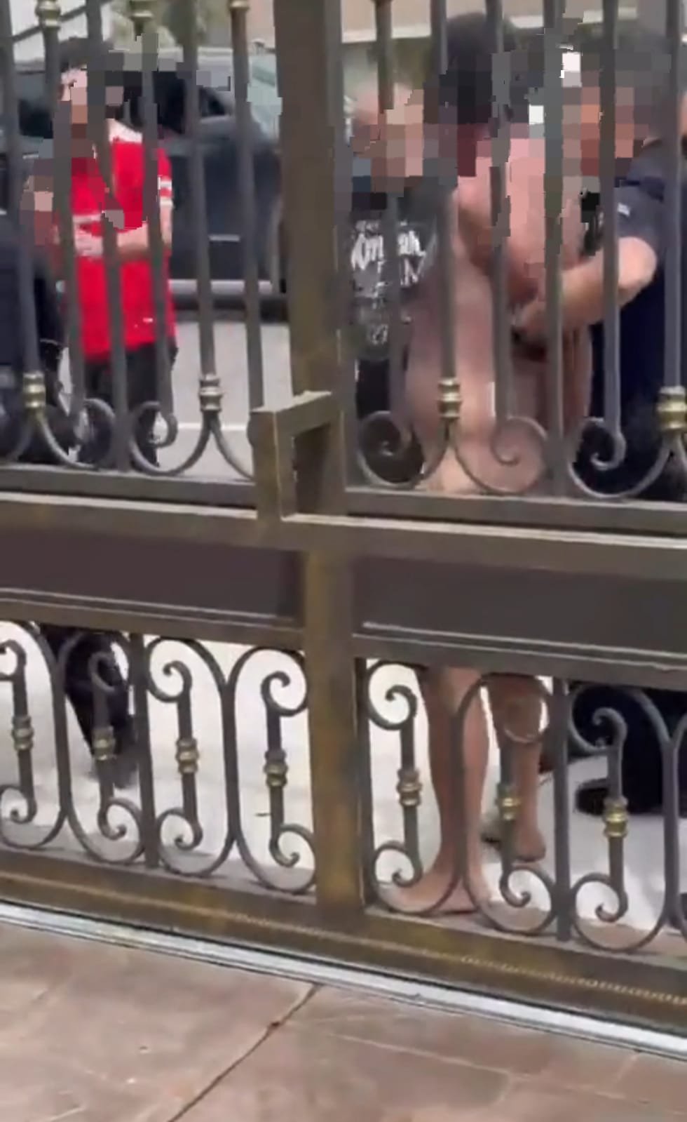 O homem desceu e tentou fugir, dezenas de pessoas estavam vendo a cena, e várias pessoas correram atrás dele e o pegaram, aí foi chutes, socos, pontapés e muitos murros no peladão de Los Angeles.