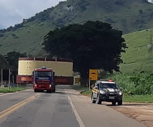 A Polícia Rodoviária Federal faz o acompanhando controlando a passagem de veículos para garantir a fluidez e segurança da via