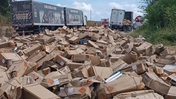 Itaobim MG. Na tarde de hoje, terça-feira 28 de março de 2023 diversas caixas de explosivos tipo dinamite caiu de uma carreta baú na rodovia BR-116 proximo a Comunidade de São João, em Itaobim.