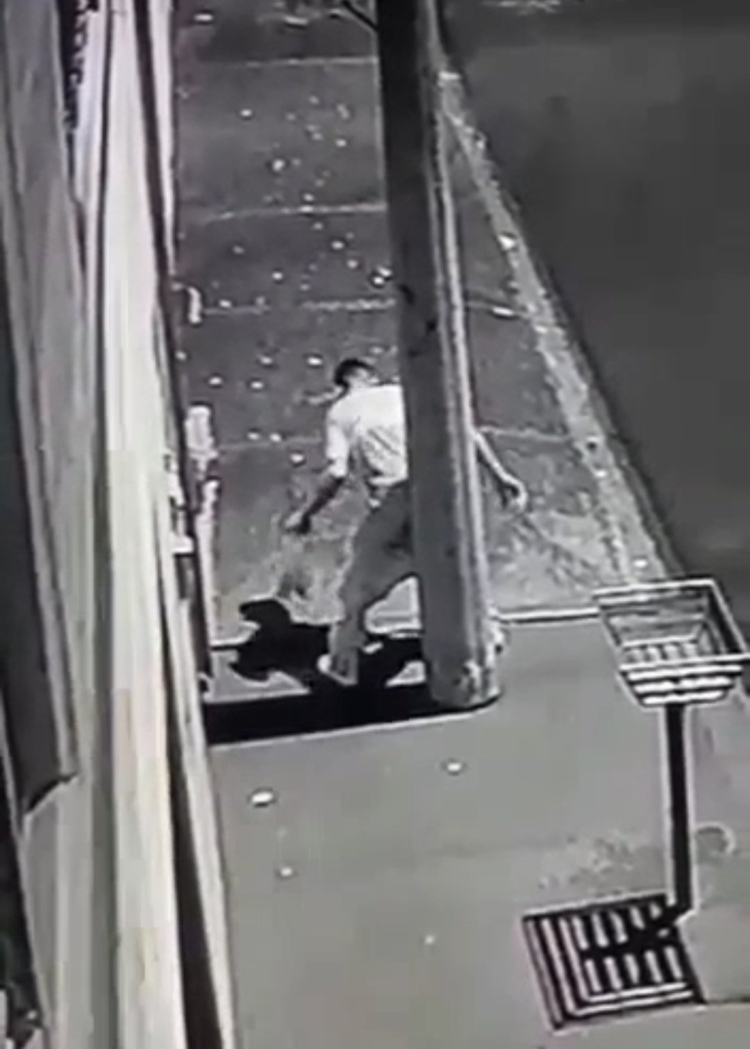 É de noite e aparece um sujeito, ele abaixa as calças e faz um cocô, foi bem rápido