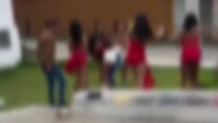 Onde na manhã de hoje, um grupo de mulheres estava brigando no posto de gasolina, a motivação da confusão é desconhecida.