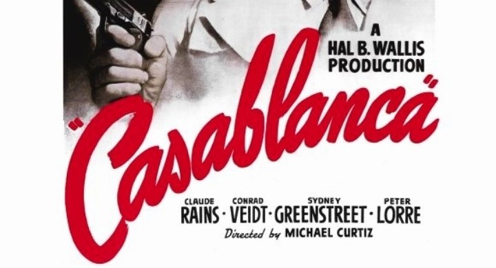 Casablanca é um drama romântico do cinema norte-americano de 1942 e até os dias atuais é considerado por publicações especializadas um dos maiores clássicos da história do cinema. Ganhou o Oscar de melhor filme, melhor roteiro adaptado e melhor direção para Michael Curtiz em 1944.