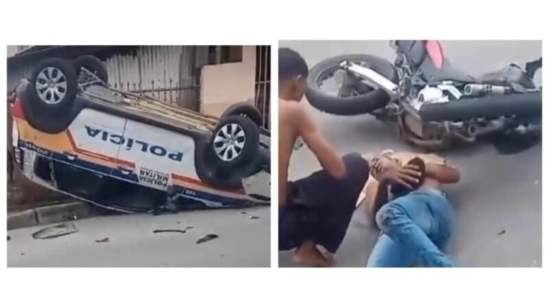 Uma viatura da polícia militar empenhada em uma demanda administrativa com apenas um condutor em seu interior, transitava pela Rua São Vicente sentido Av. Magalhães Pinto, quando no cruzamento da Rua Paquetá sofreu uma batida na sua lateral direita provocada por uma motocicleta, vindo a capotar a viatura policial. O condutor da viatura, 1º Sargento, não teve ferimentos. Na dinâmica dos fatos, a motocicleta seguia na contramão de direção pela Rua Paquetá, em velocidade incompatível com a via e cruzou a Rua São Vicente sem verificar a segurança do trânsito. Ao verificarem a condição do condutor da motocicleta e do veículo, foi constatado se tratar de um homem de 27 anos foragido do presídio de Ponte Nova, constava ainda em seu desfavor um mandado de prisão em aberto de recaptura, quanto à motocicleta Honda XRE 300, de cor preta, se tratava de produto de crime, ela havia sido roubada no dia 25 de agosto de 2023 na cidade de Ipatinga. O condutor da motocicleta teve ferimentos e foi socorrido ao Hospital pela equipe do Corpo de Bombeiros, a gravidade dos ferimentos ainda não foi divulgada.