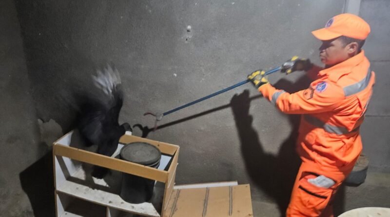 Noite de ontem (11/11), militares da 4ª Companhia de Formiga realizaram a captura de um urubu em uma residência. A ave de rapina apresentava ferimento em uma das asas e, por isso, não conseguia voar. Após a captura, o urubu foi colocado em gaiola apropriada entregue para a equipe de veterinária da Fazenda Laboratório do Centro Universitário de Formiga.