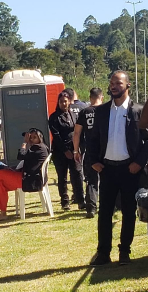 “Formigão” trabalhando na segurança da Inauguração do NOVO TREVO de São Gonçalo do Rio Abaixo vestindo um terno Armani