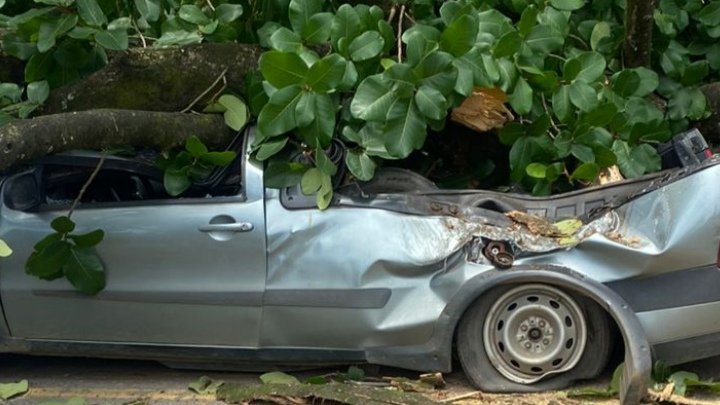 Era por volta das 11:30 horas da manhã de hoje, quando aconteceu o incidente, a árvore caiu e o tronco atingiu a carroceria do carro que se partiu ao meio, o veículo era uma Fiat Strada que estava trafegando no sentido Belo Horizonte.