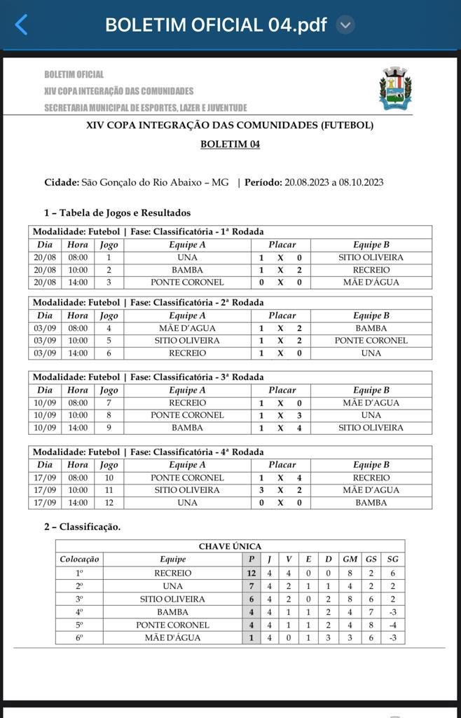 E todos estão convidados para prestigiar a última rodada da fase de classificação da Copa Integração das Comunidades de São Gonçalo do Rio Abaixo.