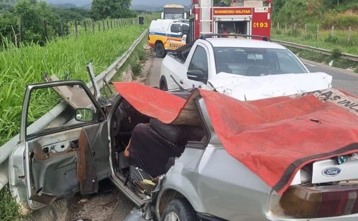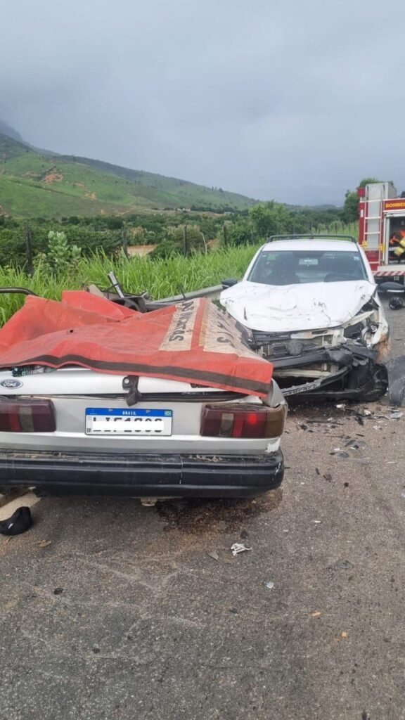 Dois veículos envolvidos no acidente – um Volkswagen Verona e um Volkswagen Saveiro – envolveram-se em uma colisão frontal.