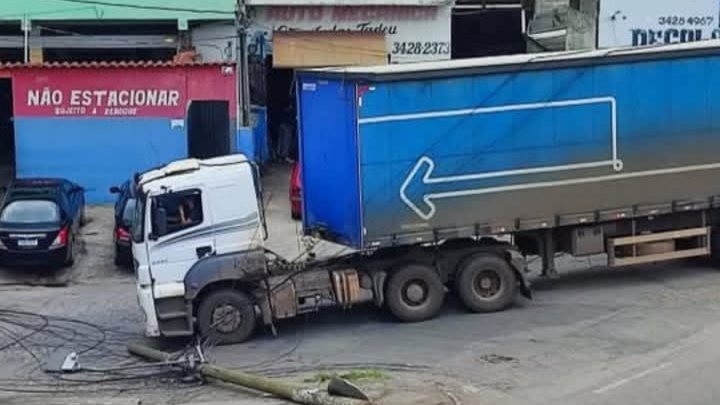 Grande BH: carreta derrubou poste e motorista ficou preso na cabine do veículo