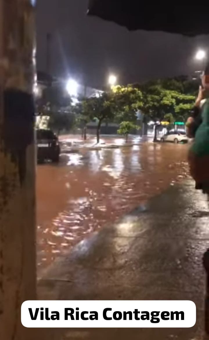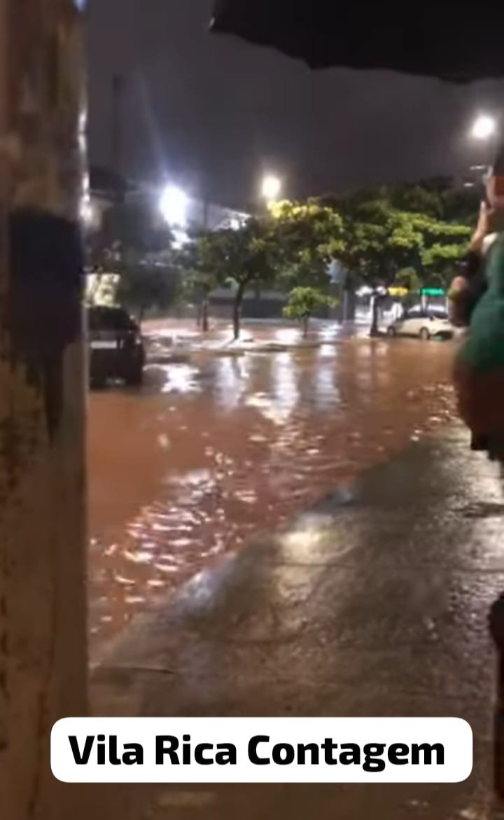 Carros parados, alguns foram tomados pelas éguas em diversas ruas e bairros, a Defesa Civil Municipal emitiu alerta em diversas regiões da Grande BH.