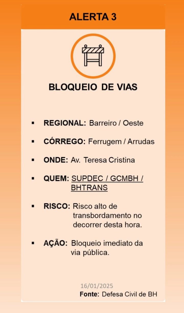 Quinta-feira (16) de janeiro de 2025. No final da tarde e início da noite de hoje despencou um forte temporal que causou alagamentos em córregos e ruas de diversas regiões da Grande BH.