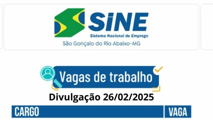Médio Piracicaba Grande quantidade de VAGAS DE EMPREGO no SINE São Gonçalo (Boa sorte aos candidatos) 26 de fevereiro de 2025 portaldomediopiracicaba@gmail.com Redação