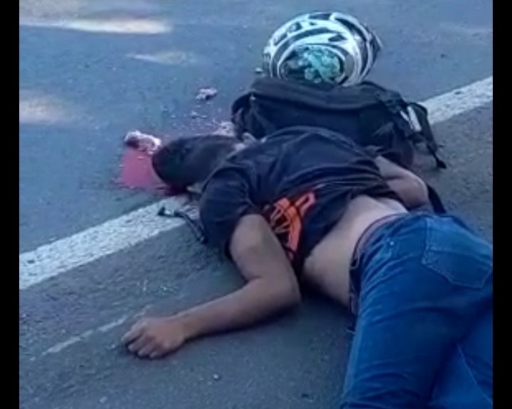 Segundo informações, um veiculo menor tocou em sua moto uma Lander e o motociclista caiu em baixo da carreta sendo atropelado e vindo a morrer no local.