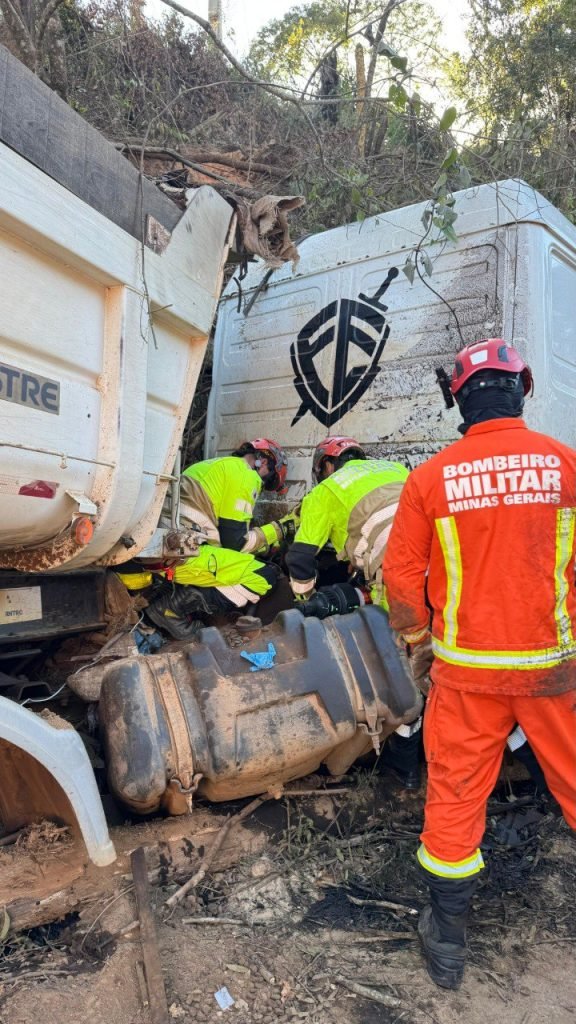 No local, tratava-se de um caminhão de transporte de minério, cujo condutor encontrava-se preso às ferragens da cabine.