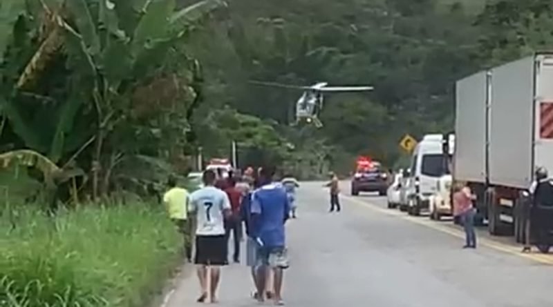 Helicóptero de resgate pousa na BR-381 em acidente gravíssimo em Bela Vista de Minas (assista os vídeos)