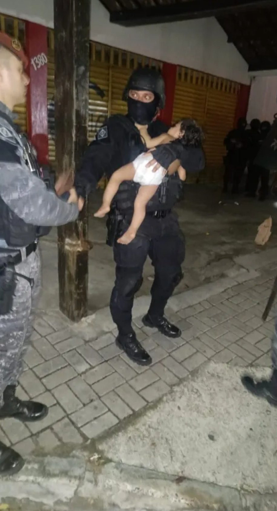 Um sniper atirou e atingiu a mão do homem, a criança foi salva com vida.