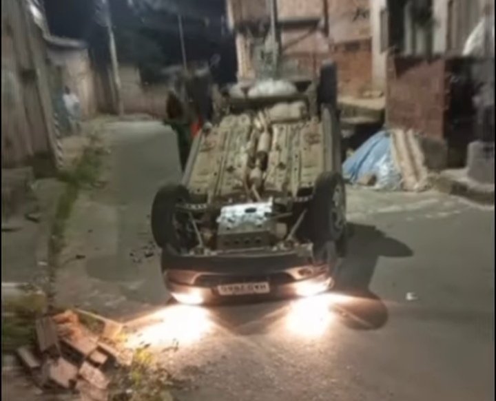Um homem capotou um veículo na rua Violeta na madrugada de hoje. A ocorrência aconteceu no bairro São João.