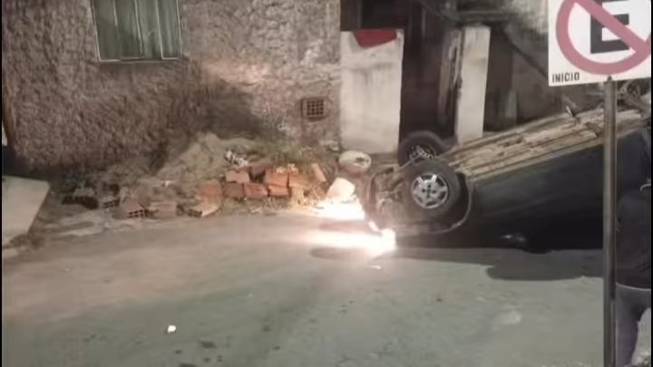 Homem bêbado capotou carro e acabou preso hoje em João Monlevade