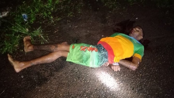 A vitima é um jovem, ele foi encontrado amarrado, o seu corpo apressntava sinais de tortura e também foi alvejado com varios disparos de arma de fogo.