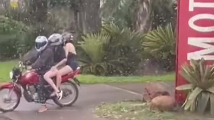 Homem é flagrado saindo do motel de moto com duas mulheres