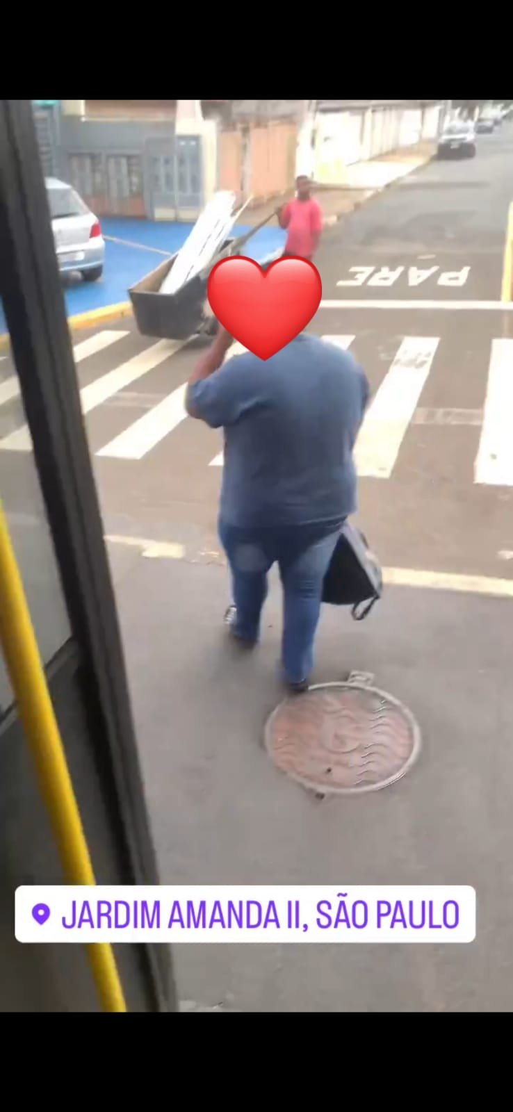 Mas agora temos esse caso que começou a percorrer as redes sociais, esse indivíduo acima estava tentando de todo jeito pegar no ÊNIS de um homem dentro do coletivo, óbvio que temos que colocar um coração no rosto do rapaz por causa dos direitos de imagem etc etc e etc.
