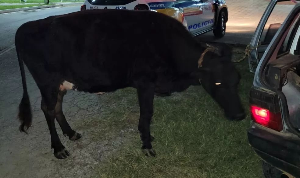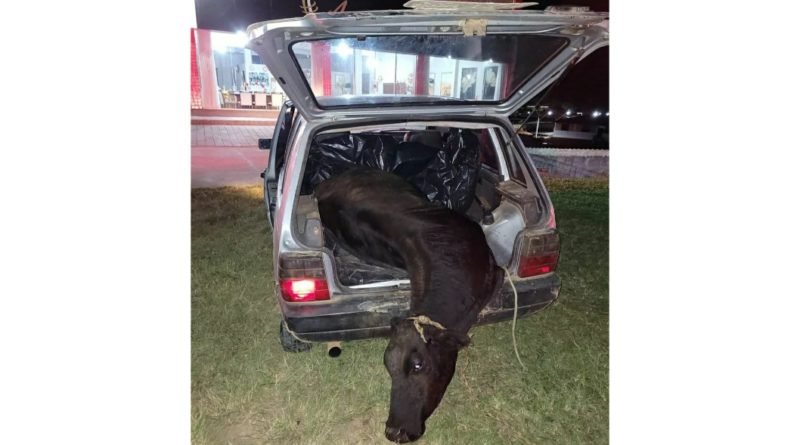 Homem é preso com ? vaca ? dentro de um carro