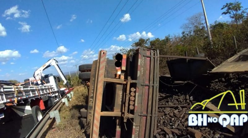 Homem morre em capotamento de caminhão carregado de carvão em Nova Serrana MG