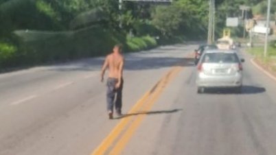 Homem “pirou o cabeção” e estava andando no meio da BR-381 (assista o vídeo)