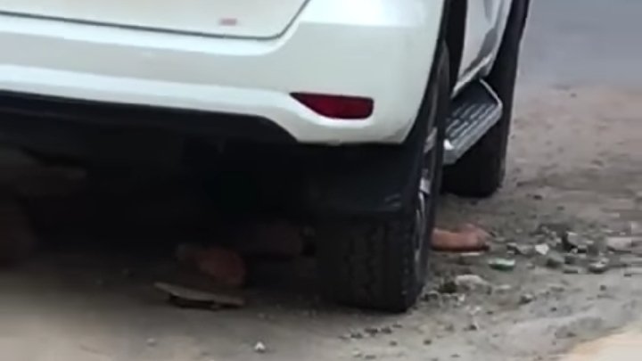 Passado algum tempo o motorista retornou entrou dentro do carro, ligou o veículo e por sorte percebeu que algo, ou alguém estava debaixo do veículo.