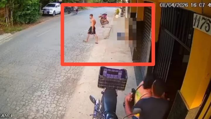 Após ser golpeado o autor do feminicídio tentado caiu.