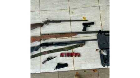 Durante as buscas, a equipe policial localizou 6 armas de fogo, sendo 1 pistola 9mm, 1 revólver calibre 32 e 4 espingardas. Na oportunidade, foi lavrado um auto de prisão em flagrante de um segurança.