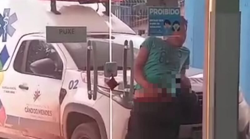 O homem está na porta do hospital municipal de Candido Mendes e quem fez o registro foi uma das funcionárias, inclusive outras profissionais da saúde apareceram no vídeo.
