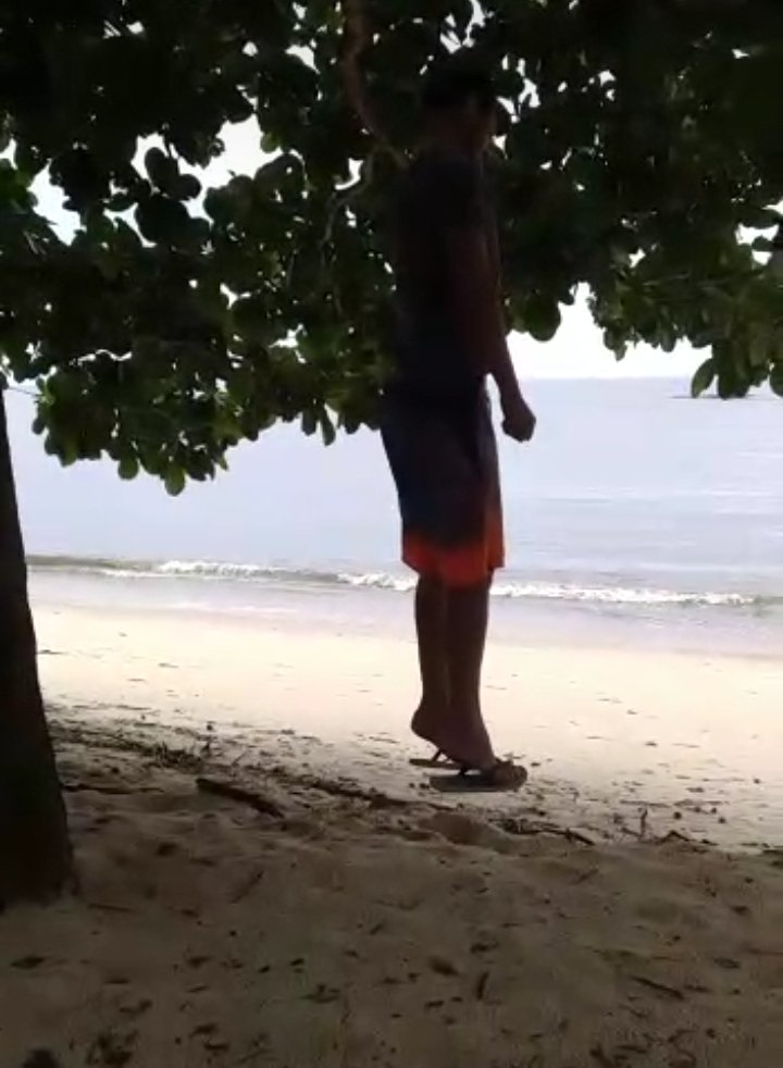 Ele subiu em um pé de árvore localizada na linda praia, uma vista tão bonita, um local maravilhoso e acontece uma cena trágica como essa.