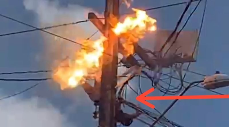 Um homem identificado pelo nome de Levi sofreu uma descarga elétrica após tentar fazer um famoso “gato” de energia elétrica.