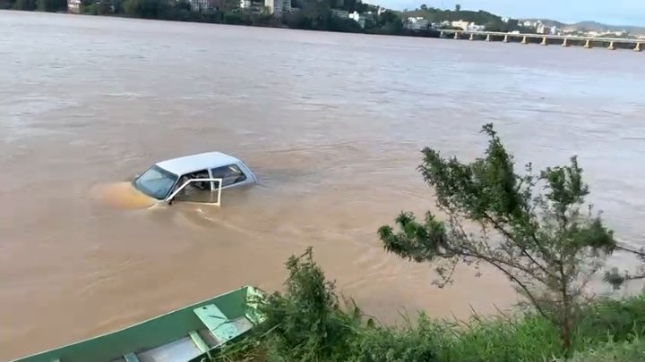 Resultado, o veículo foi parar dentro do Rio Doce.