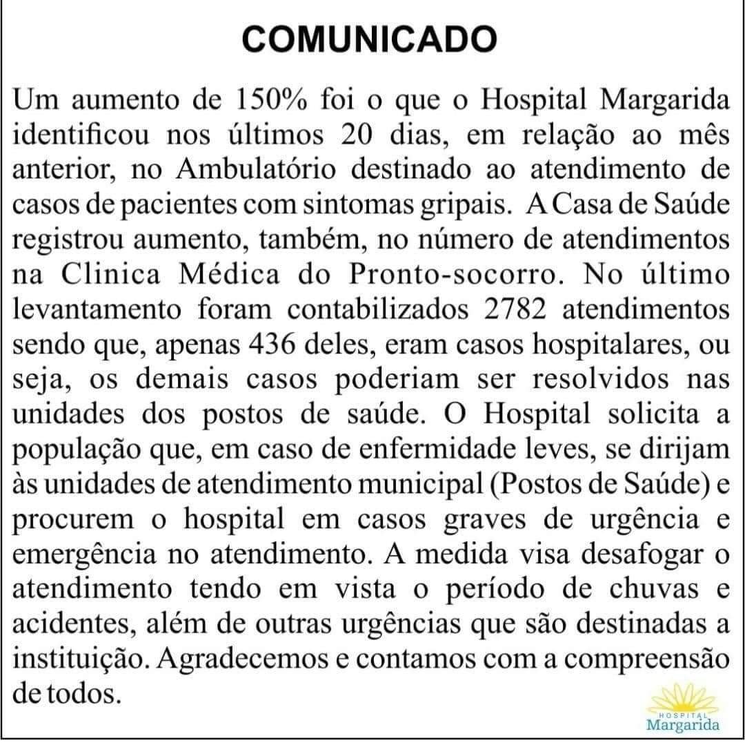 Saúde Hospital Margarida João Monlevade MG, o número de pessoas com sintomas gripais aumenta em 150 % 4 de janeiro de 2022 portaldomediopiracicaba@gmail.com Redação