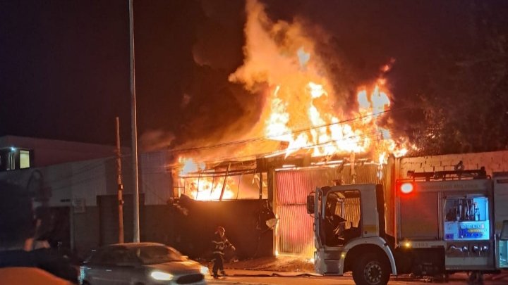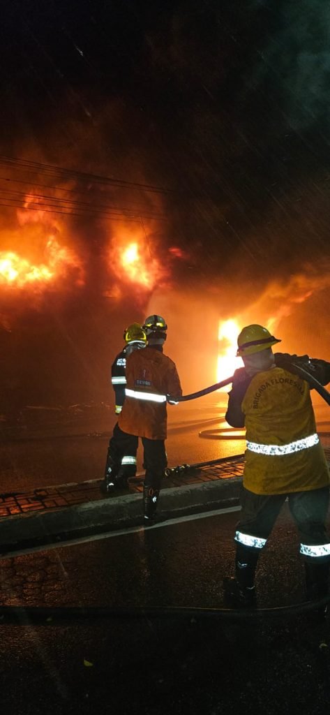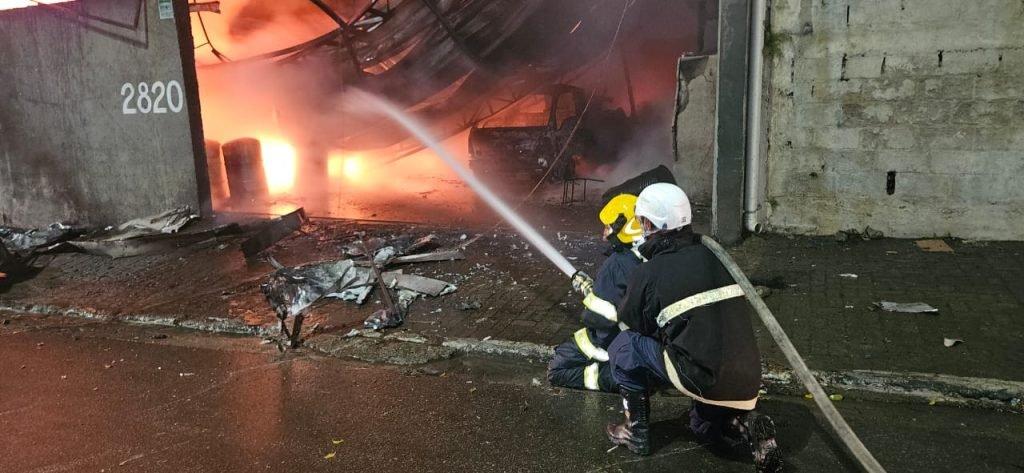 Incêndio de grandes proporções destrói galpão na noite de hoje em João Monlevade (assista o vídeo)