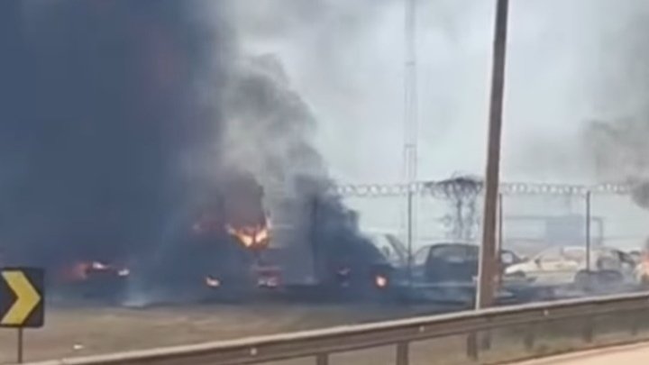 Incêndio destrói carros no pátio da PRF em Betim (ocorrência em andamento)