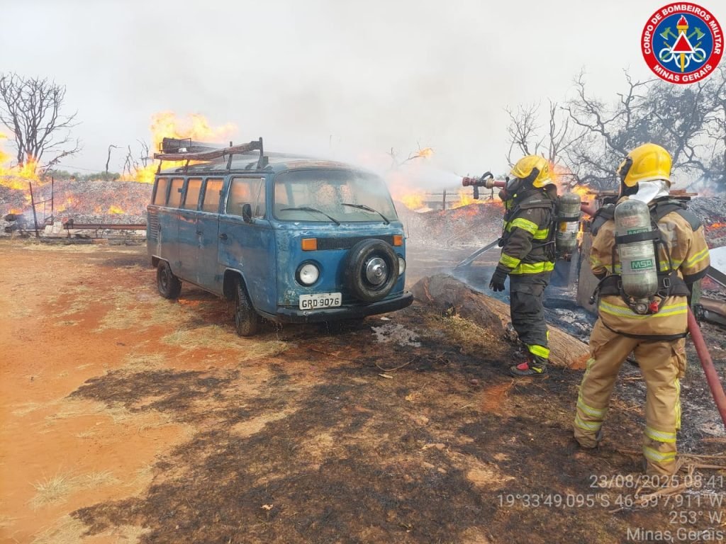 Durante a ocorrência, o fogo ganhou grandes proporções, sendo necessário o emprego de 4 viaturas, totalizando 11 militares.