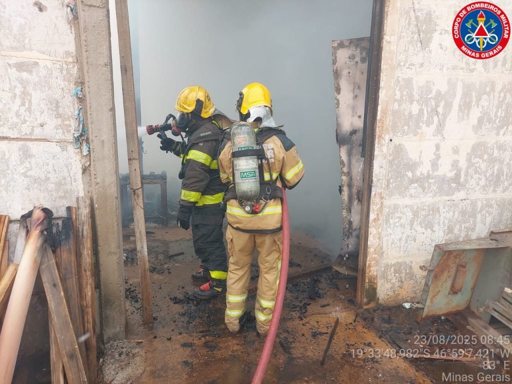 O fogo causou danos significativos à estrutura do galpão, atingindo telhado, paredes, sistemas elétrico e hidráulico, além de maquinários e madeira armazenada.
