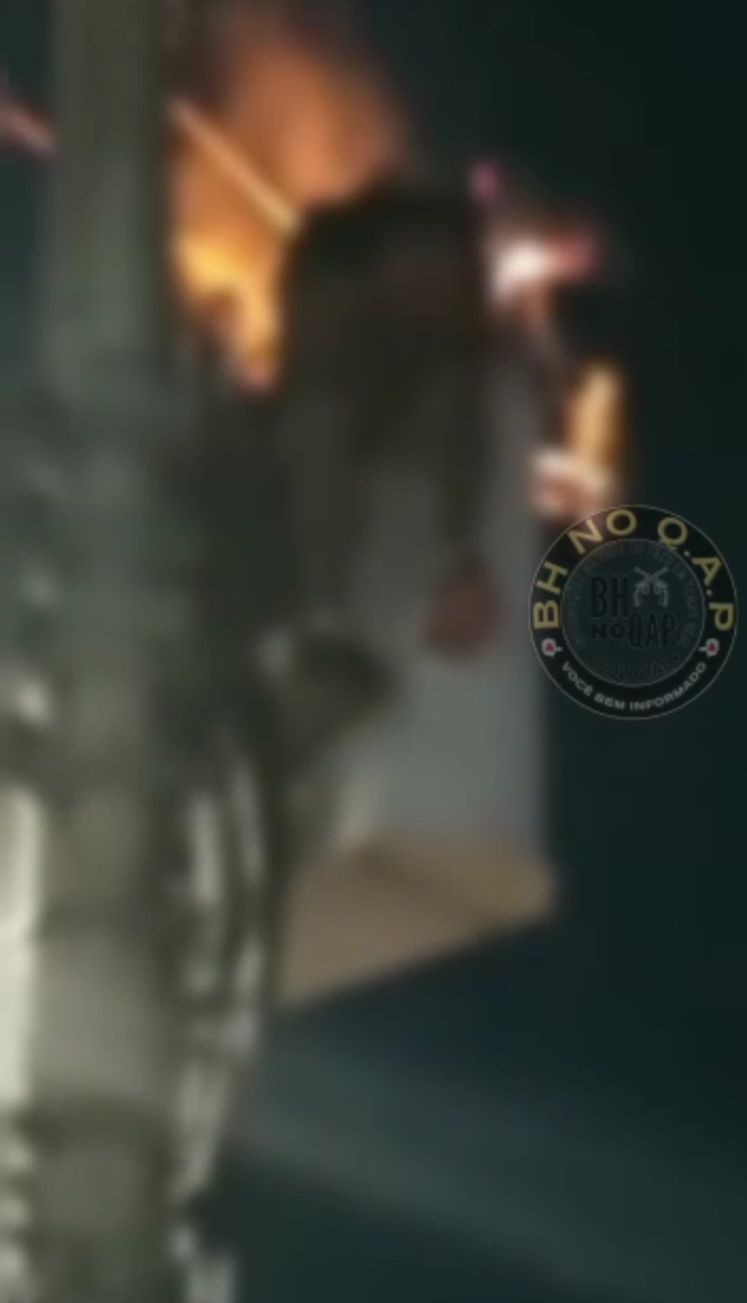 Registros feitos por populares mostram o corpo do rapaz preso ao transformador em chamas.