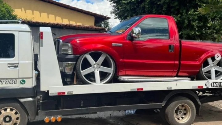 Com ele, a corporação apreendeu também uma caminhonete Ford F-250 modificada com rodas e som automotivo.